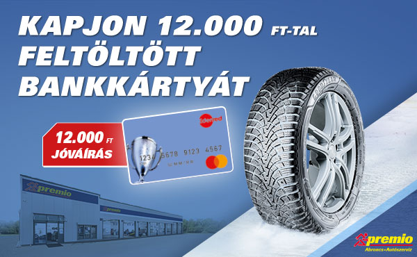 - Vegye át a promóciós kódot és a feltöltetlen bankkártyát a szervizben. Regisztrálja vásárlását a mypremio.eu oldalon. A sikeres jóváhagyást követően a bankkártya hét munkanapon belül 12.000 Ft-tal kerül feltöltésre. A bankkártyát bármely terminálon használhatja, de készpénz felvétele nem lehetséges vele.
